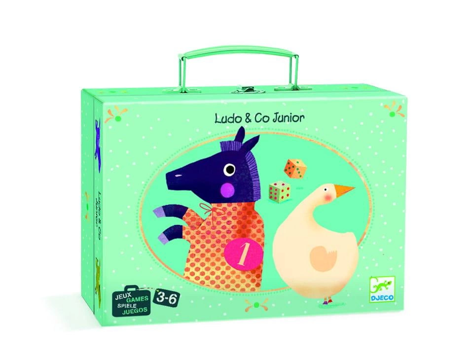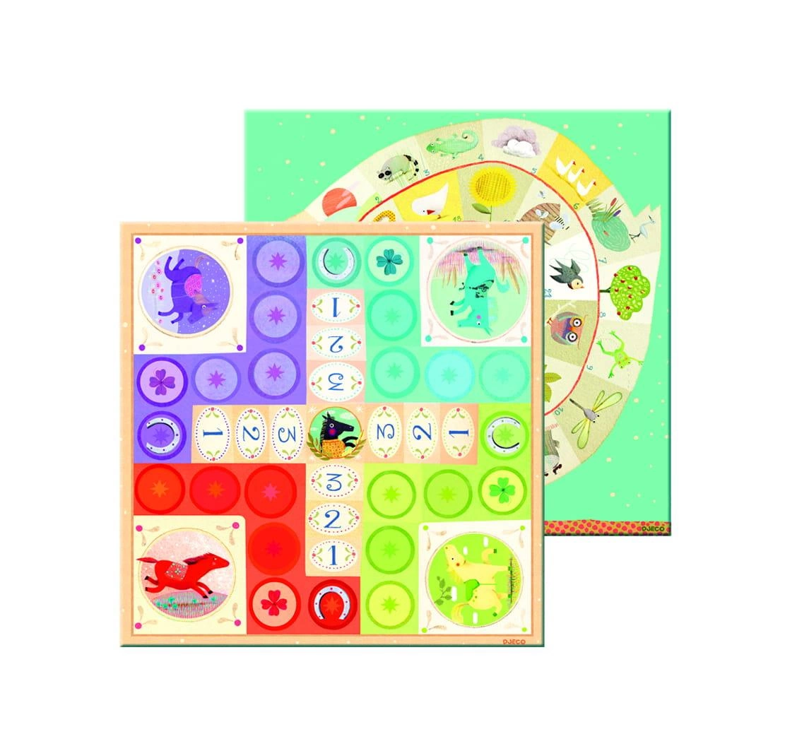 Gra planszowa Gęsi Djeco to zestaw dwóch gier: gąski i koniki (a'la chińczyk) przeznaczonych dla 2-4 graczy. Całość zapakowana w efektowną walizeczkę w pięknych, miłych dla oka kolorach.