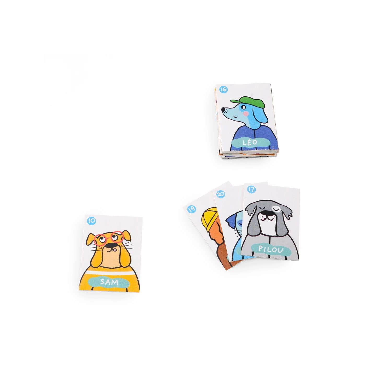 W zestawie znajdują się dwie drewniane ramki na których umieszcza się 20 dwustronnie ilustrowanych kart (postacie kotów z przodu, psów z tyłu). Każdy gracz otrzymuje jedną ramkę. Postacie widniejące na kartach są podpisane swoimi imionami.