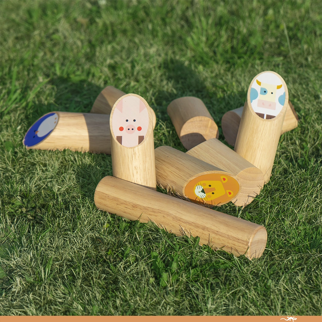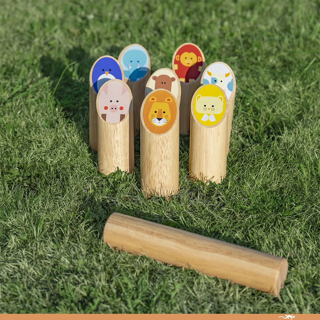 Gra w nordyckie kręgle została specjalnie przystosowana dla najmłodszych graczy - z rysunkami, dopasowaną wielkością kijka do rzucania oraz uproszczonymi zasadami.