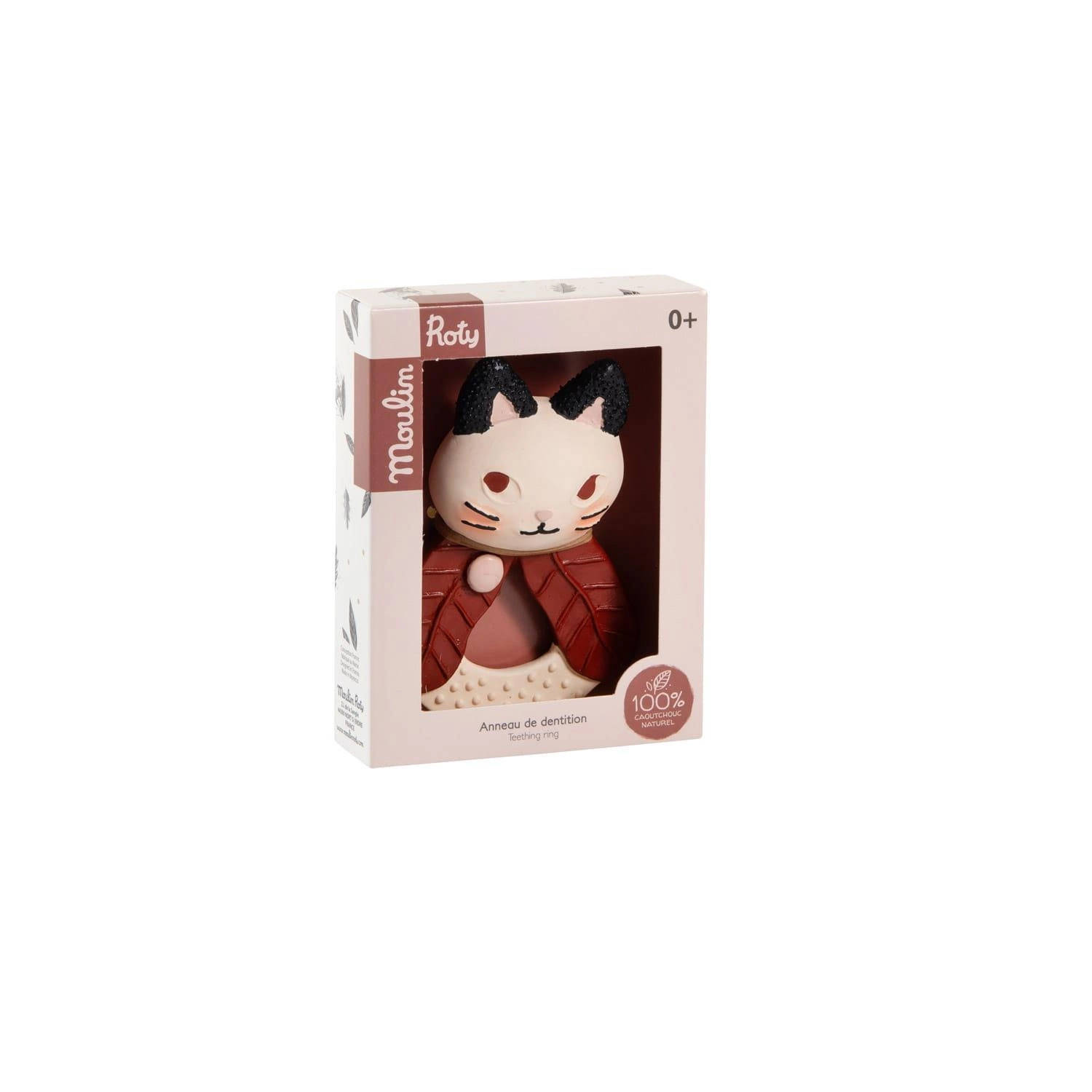 Piękny gryzak kot z kolekcji Après la Pluie ze 100% naturalnej gumy - idealny do łagodzenia bolesnego ząbkowania maluszka.