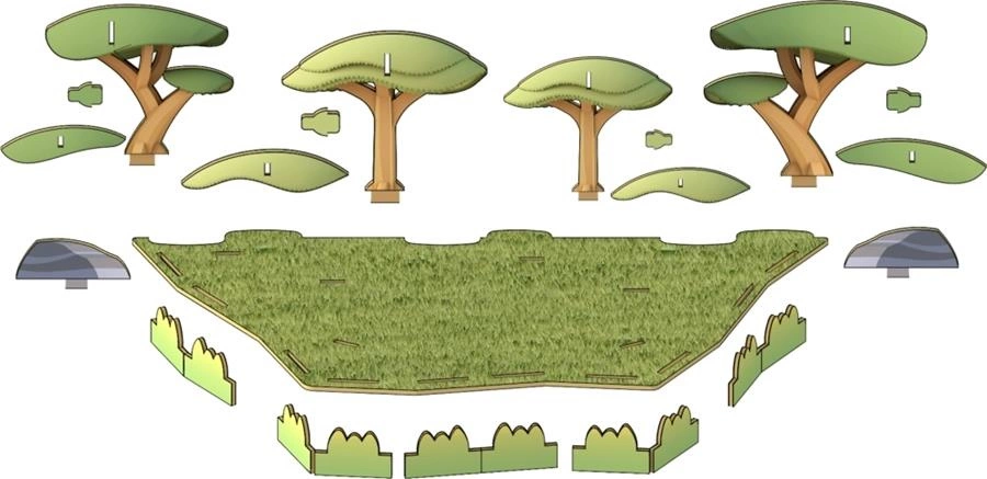 - kolorowa makieta z tłem, drzewami i skałami do złożenia.