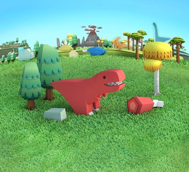 - do zestawu dołożona makieta z tłem, drzewami, kością do złożenia