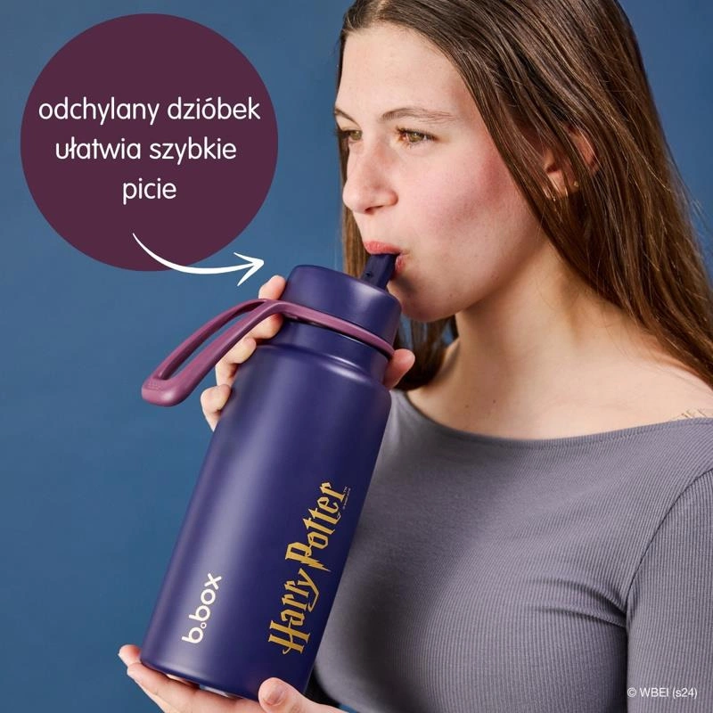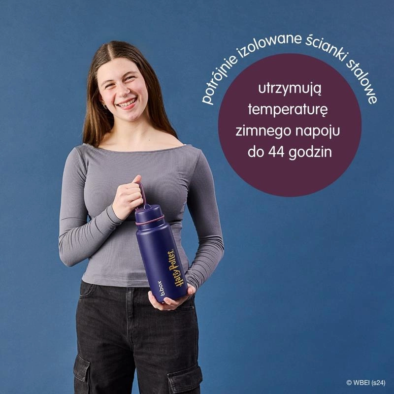 Termobutelka b.box 1L – idealna na każdą okazję! Spraw, aby twój lunch był magiczny, dzięki lunchboxom i butelkom na napoje inspirowanym Harrym Potterem, idealnym na Twoją ulubioną ucztę... Bo rzucanie czarów to ciężka praca! Nowoczesna butelka termiczna b.box o pojemności 1L to niezastąpiony wybór dla osób, które potrzebują niezawodnego rozwiązania do nawodnienia podczas codziennych aktywności. Dzięki potrójnej izolacji ze stali nierdzewnej napoje pozostają zimne nawet do 46 godzin, co sprawia, że świetnie sprawdza się zarówno podczas treningów, jak i w podróży. Szeroki otwór umożliwia łatwe uzupełnianie płynów i dodawanie kostek lodu, a chowany ustnik gwarantuje komfortowe i higieniczne użytkowanie.