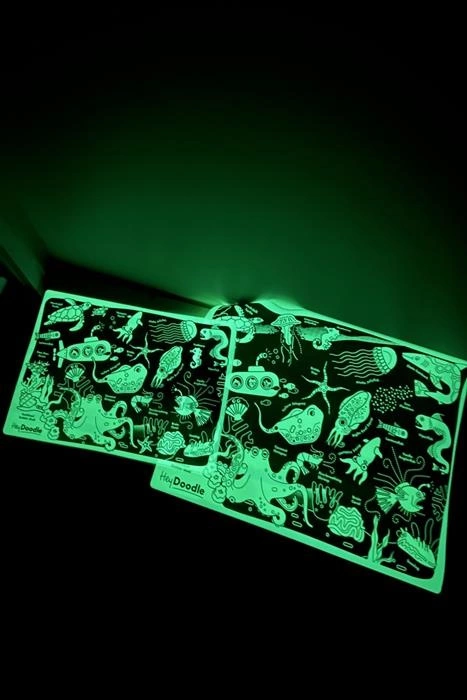HeyDoodle Duża Mata Silikonowa Świecąca w Ciemności do Kolorowania A4 - Morskie Głębiny