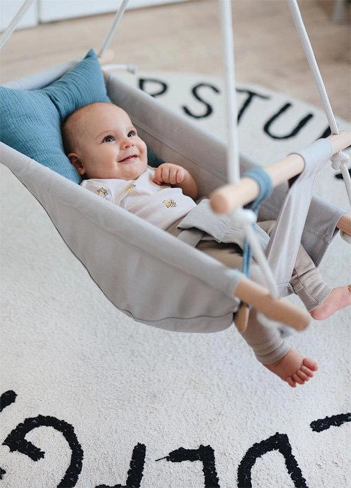 Huśtawka od Small Foot to bardzo wygodne i bezpieczne miejsce do leżenia z miękką poduszką i 3-punktowym pasem. Dzięki niech Twoje dziecko może wyciszyć się a nawet zdrzemnąć.
