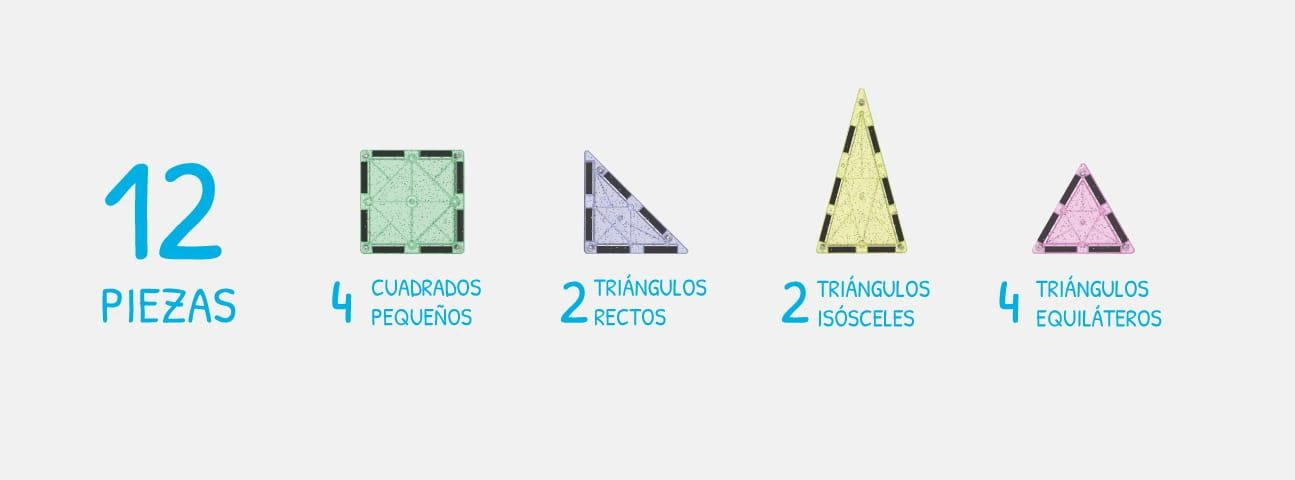 12 elementów magnetycznych w 4 kolorach z brokatem: