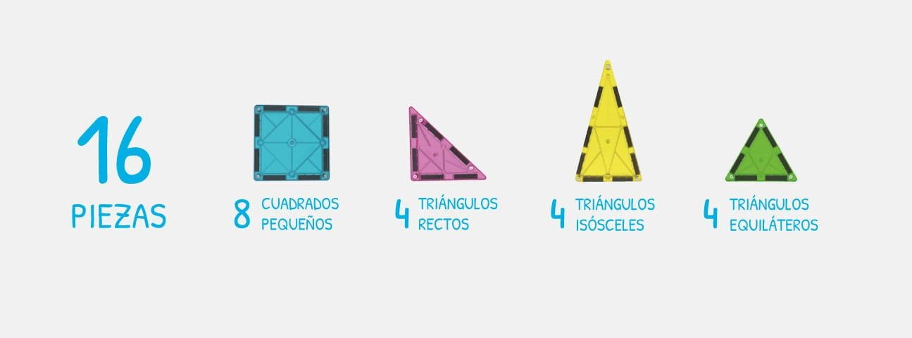 16 elementów magnetycznych w 3 kolorach, świecące w