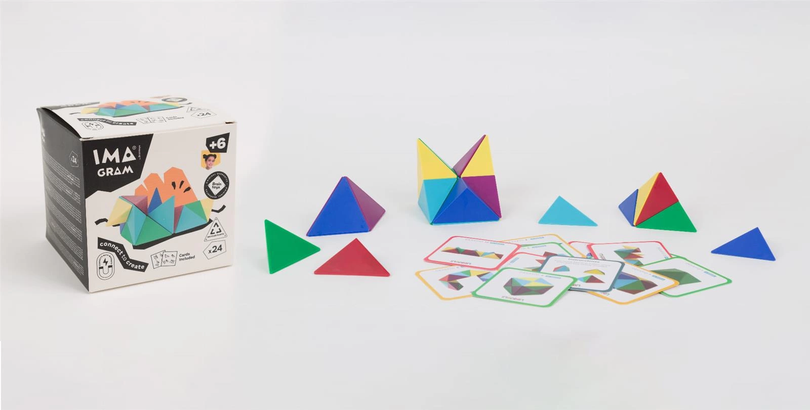Fascynujący świat geometrii zaprasza do zabawy, dzięki magnetycznych klockom Imanix IMAGRAM! Elementy o kształcie trójkątnych brył pozwalają budować figury i budowle w formacie 3D. Zestaw zawiera karty wyzwań, które prezentują różne obiekty do ułożenia.