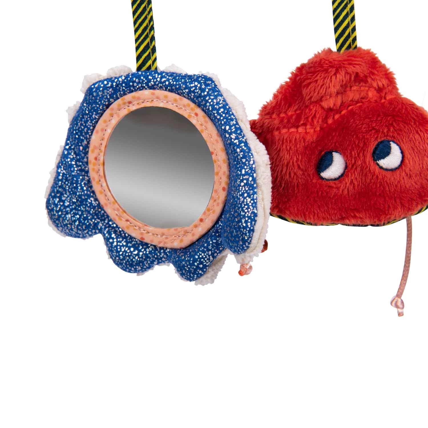 Maskotka krab w formie spirali, którą można owinąć poręcz wózka, łóżeczka lub zawiesić przy foteliku samochodowym. Dodatkowe elementy takie jak szeleszcząca pluszowa muszelka lub przezroczysta grzechotka z koralikami zapewnią dziecku interesujące zajęcie.