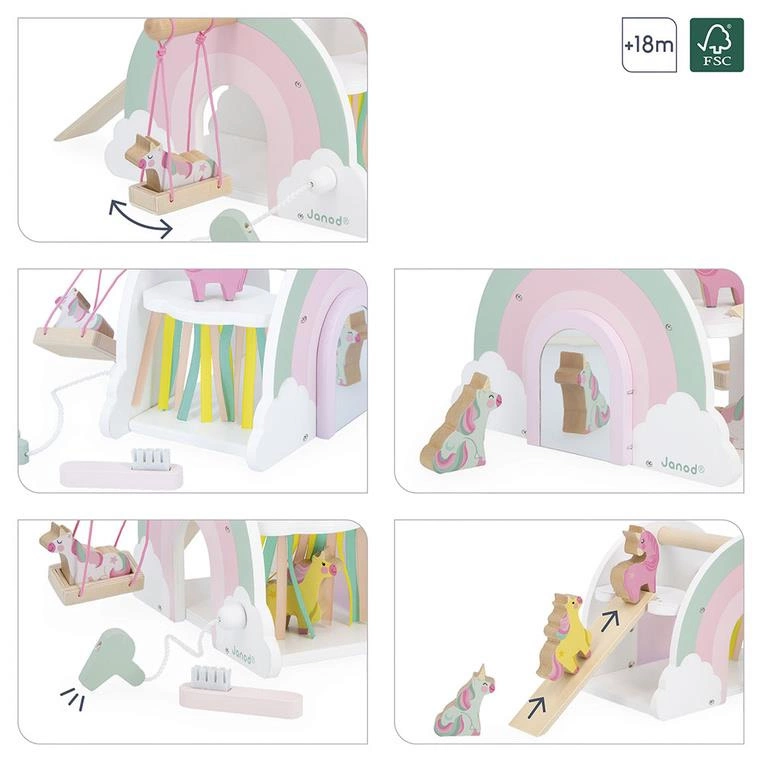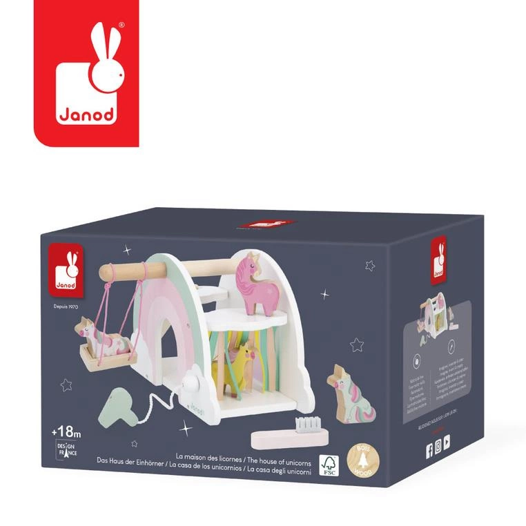 Janod Drewaniany domek jednorożców z 5 akcesoriami Jednorożce 18m+