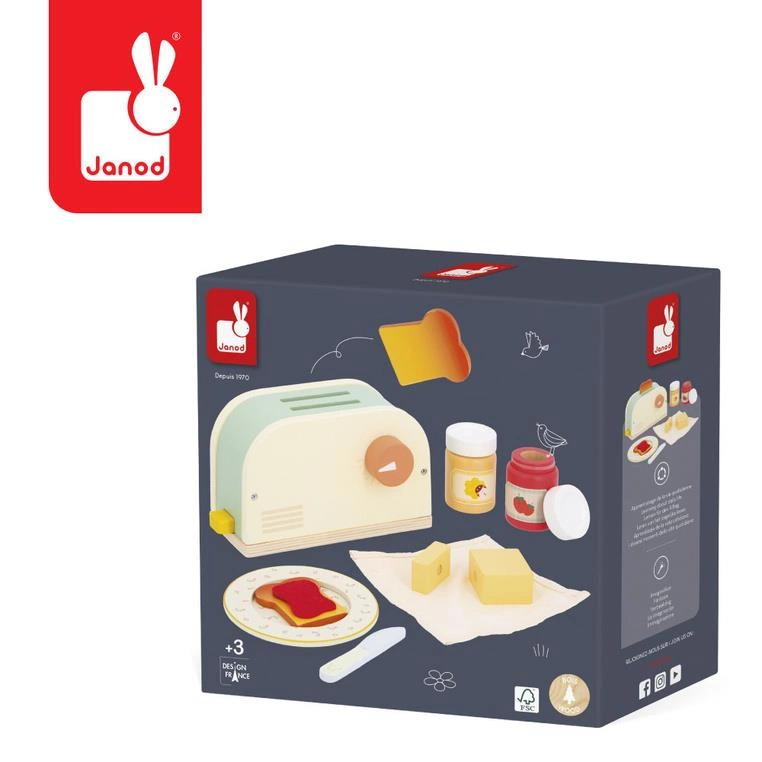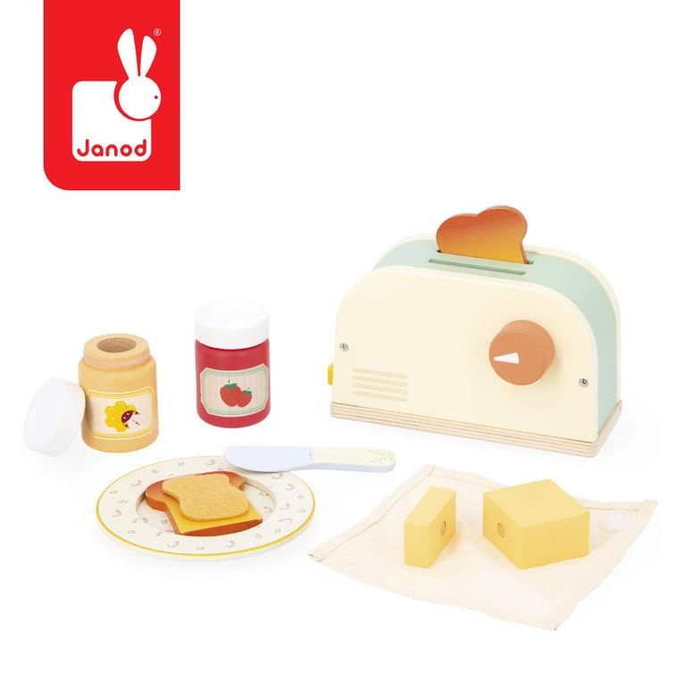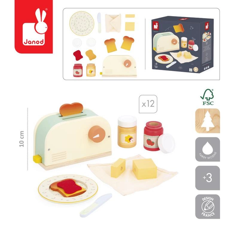 Janod Drewniany zestaw śniadaniowy z tosterem i 12 akcesoriami Shiny Grandma 3+