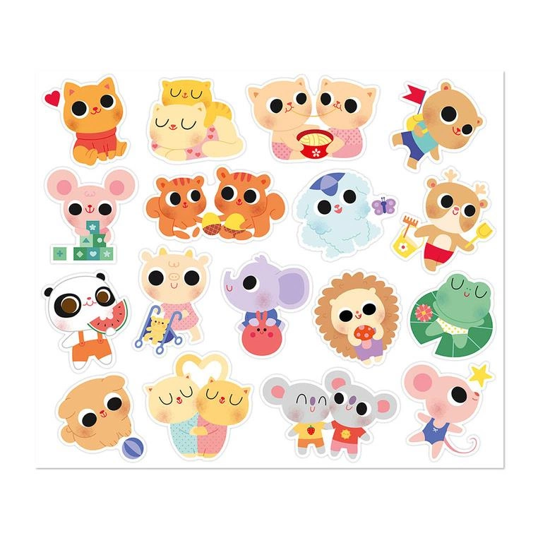 Janod Duże naklejki wielorazowe na arkuszach 100 szt. Małe zwierzęta 18m+