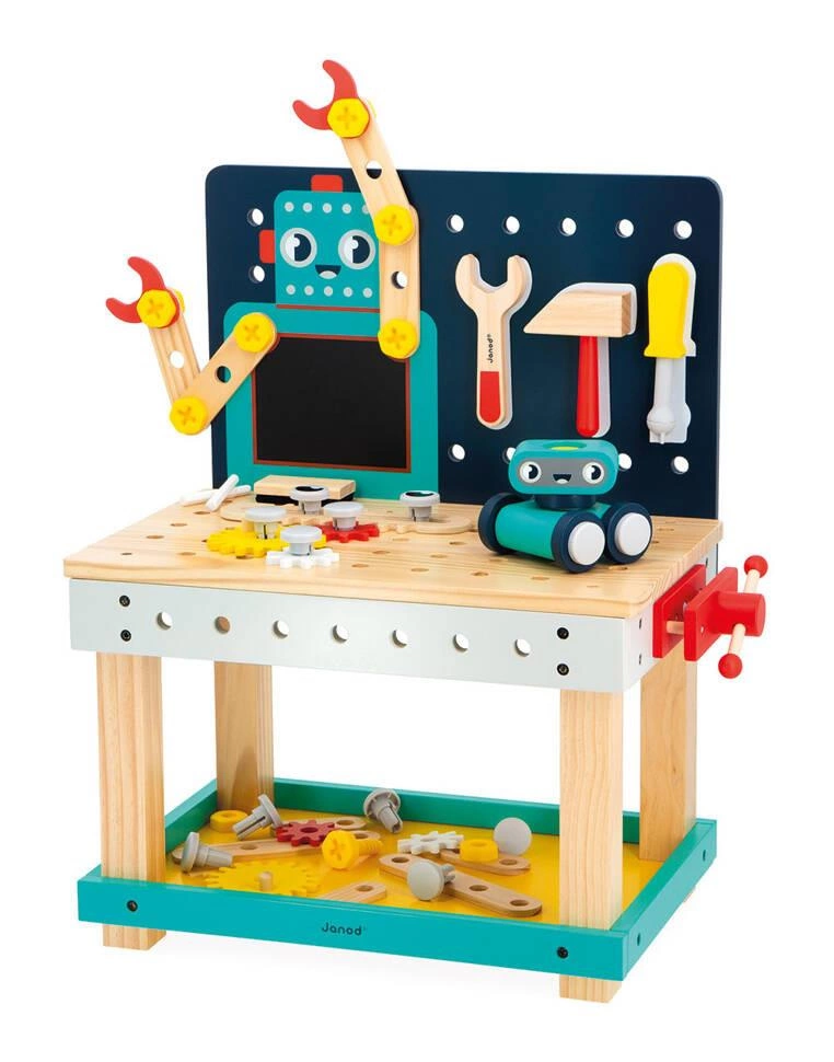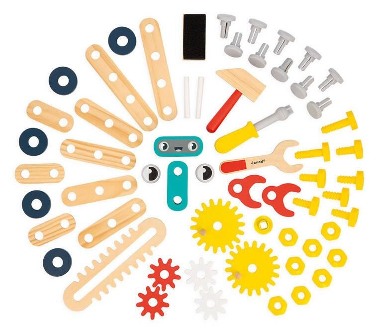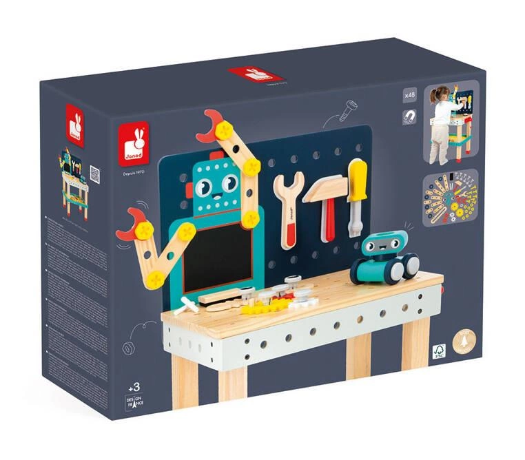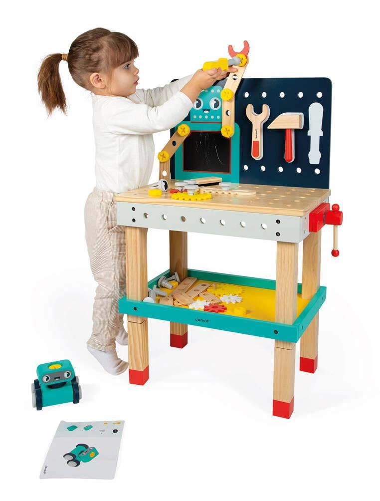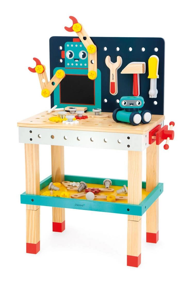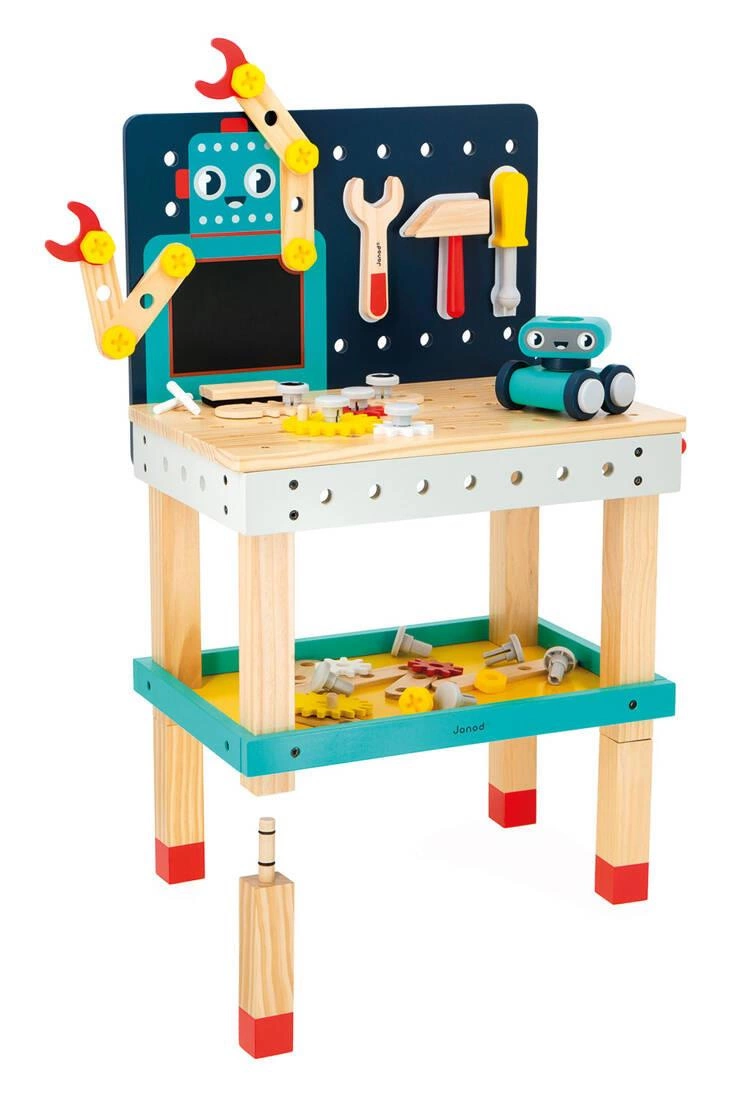 Janod Duży stolik warsztat drewniany magnetyczny Robot Brico ‘Kids 3+