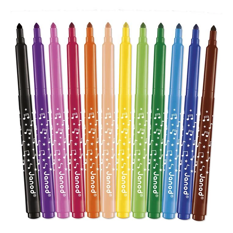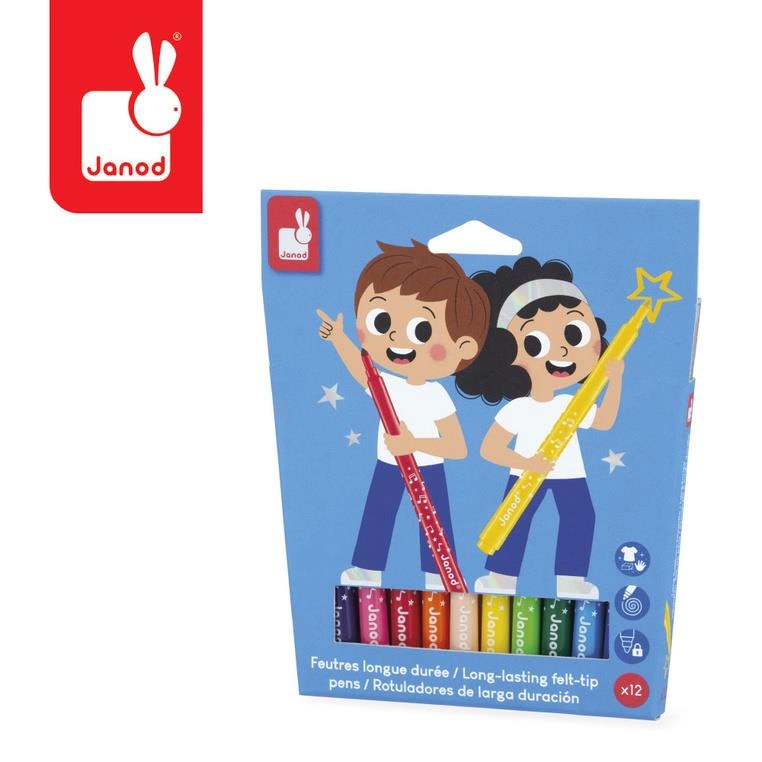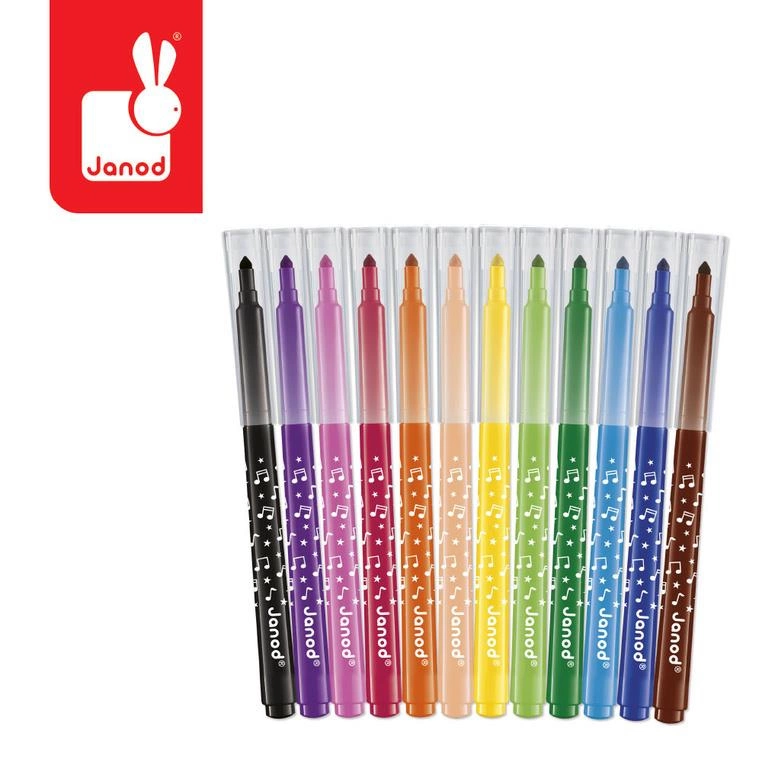 Janod Flamastry pisaki z filcową końcówką 12 kolorów 3+