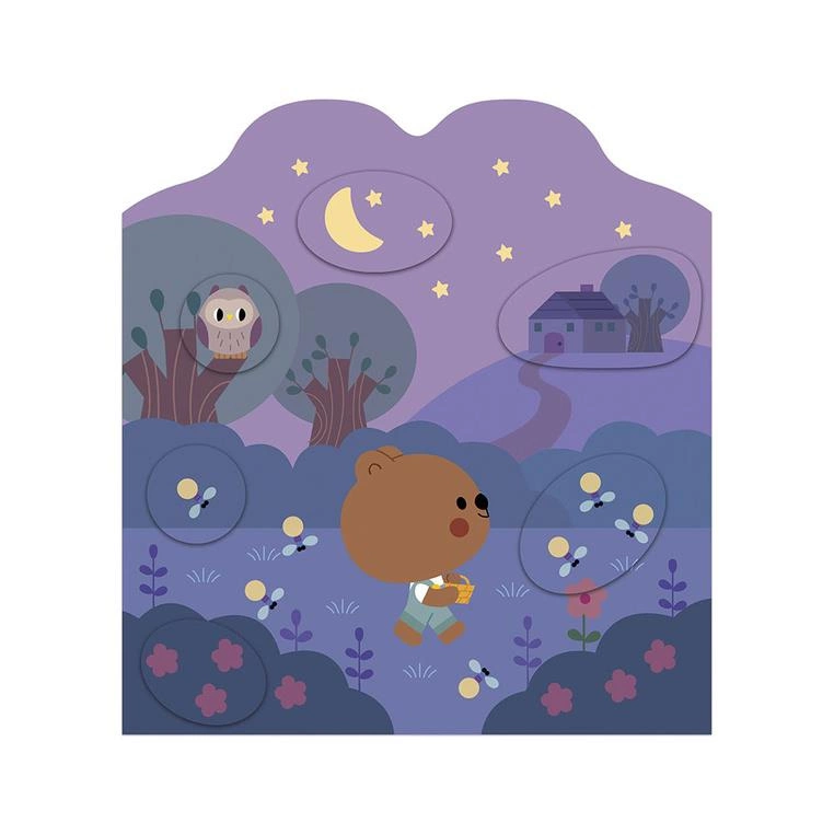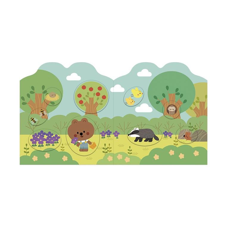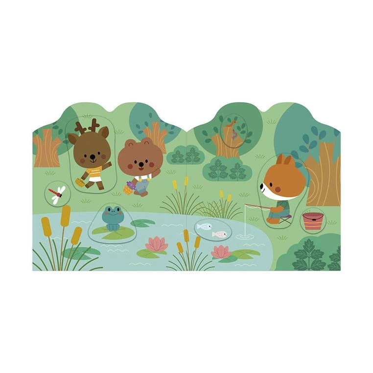 Książeczka do wyklejania z naklejkami Las francuskiej marki JANOD. Książeczka zawiera wewnątrz 7 różnych scen z pustymi miejscami do wypełnienia naklejkami. Dziecko może śledzić losy bohaterów opowieści – leśnych zwierzątek - opowiadać o nich i jednocześnie samodzielnie uzupełniać ilustracje załączonymi do książki naklejkami (ponad 50 szt.).