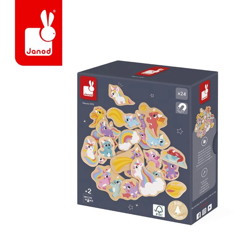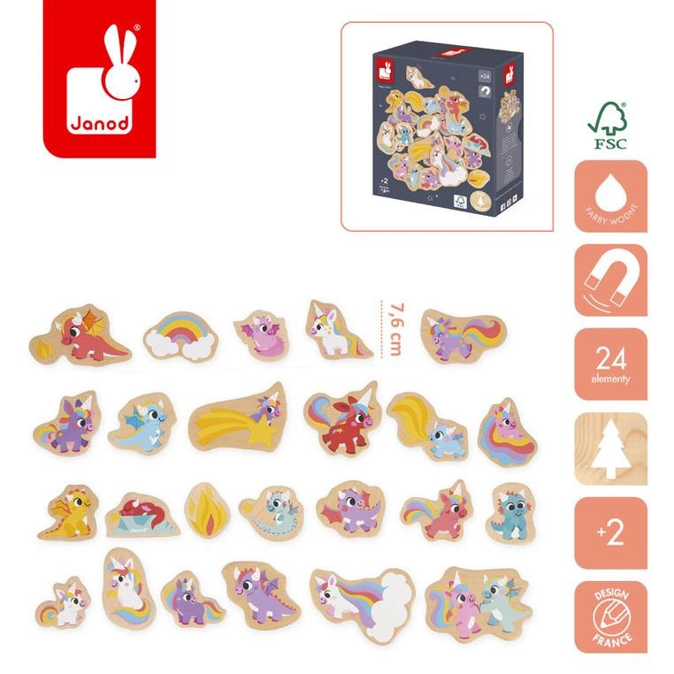 Janod Magnesy drewniane Jednorożce i smoki 24 szt. 2+