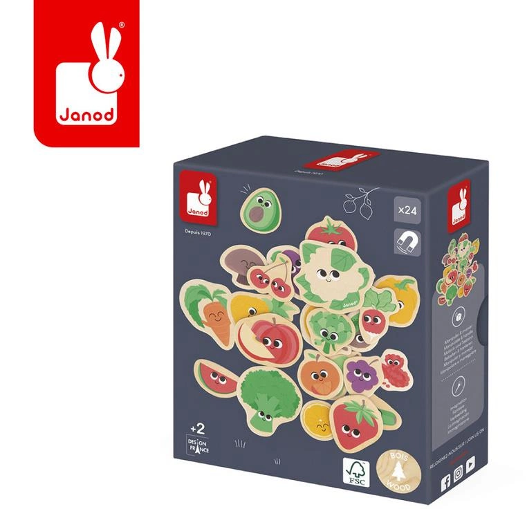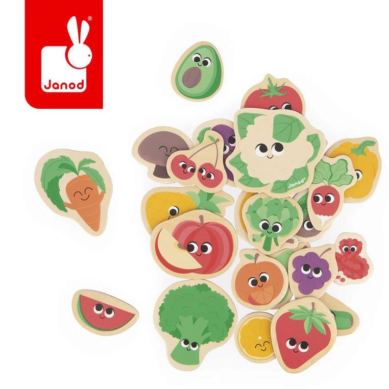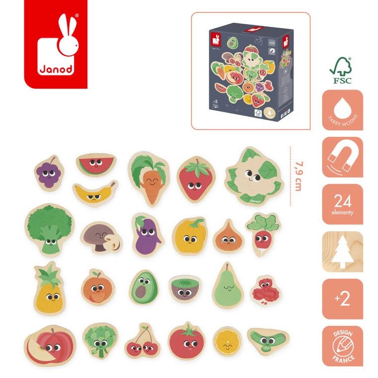 Janod Magnesy drewniane Owoce i warzywa 24 szt. 2+