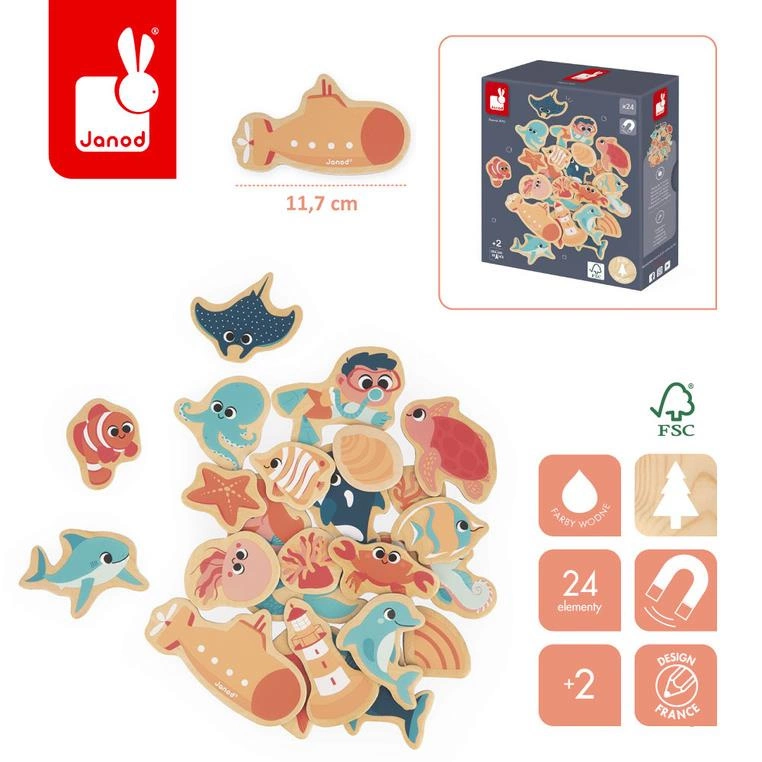 Janod Magnesy drewniane Podwodny świat 24 szt. 2+
