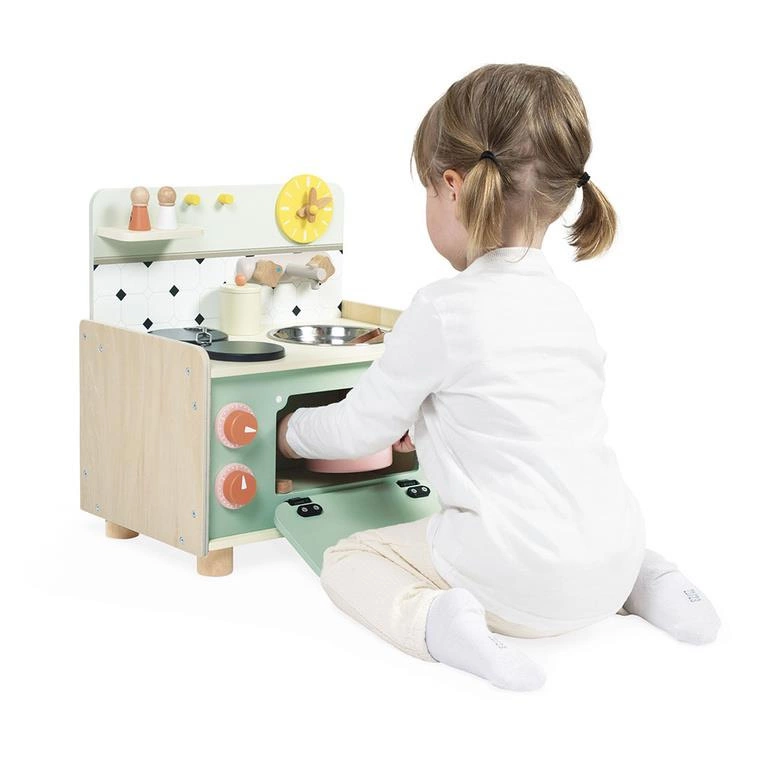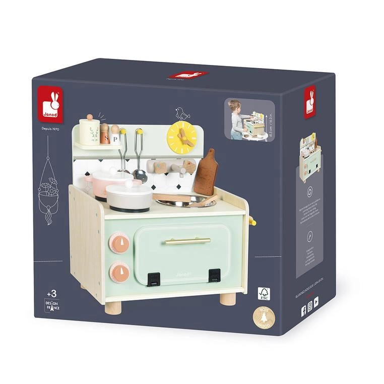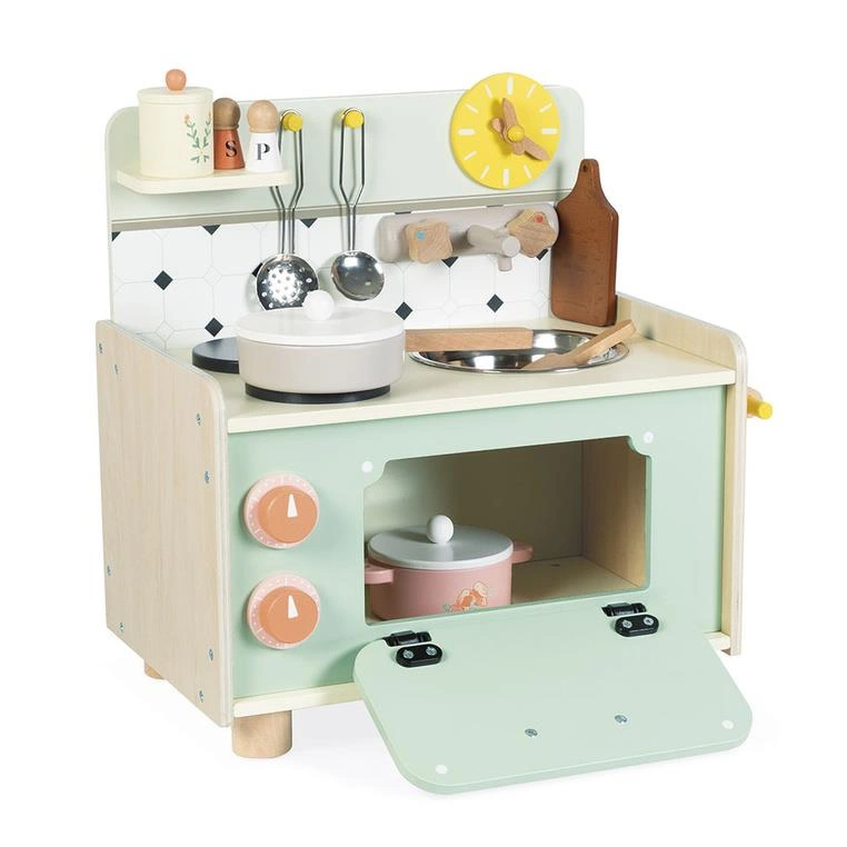 Janod Mała drewniana kuchnia z 9 akcesoriami Shiny Grandma 3+