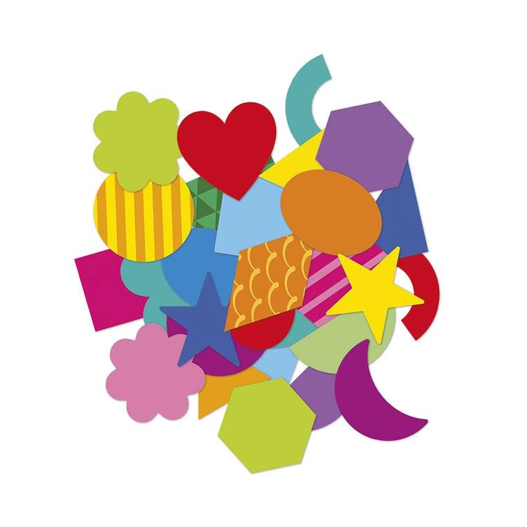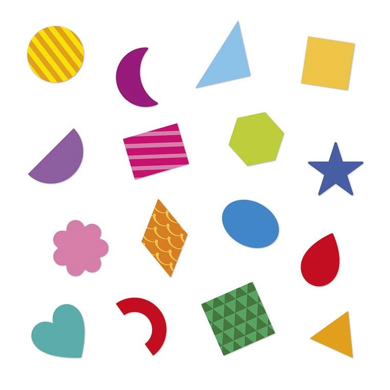 Zestaw naklejek Figury geometryczne francuskiej marki JANOD zawiera 300 szt. wyciętych po obrysie naklejek wielokrotnego użytku. Naklejki są odpowiednie dla dzieci od 3. roku życia – mają optymalny rozmiar (ok. 3 x 3 cm każda) i nacięcie na spodzie dla łatwiejszego odklejania. dla łatwiejszego odklejania. Naklejki są w kilkunastu różnych kształtach geometrycznych i różnych kolorach. Połowę z nich zdobią urocze wzorki.