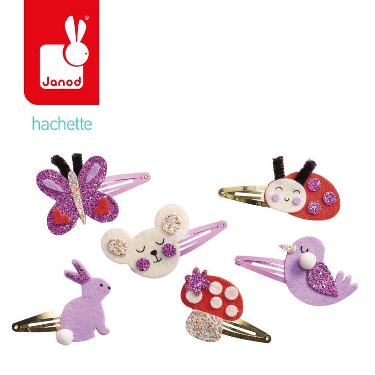 Janod Zestaw kreatywny do tworzenia biżuterii Brokatowe spinki do włosów Ogród 5+