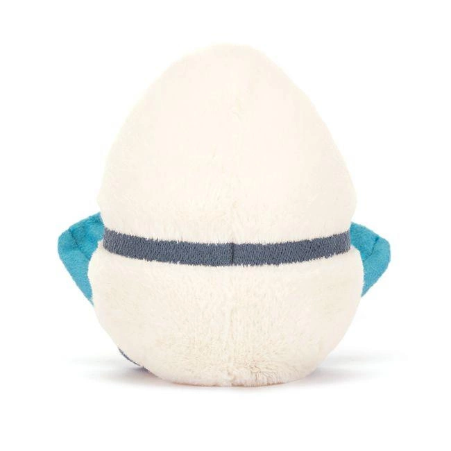 Jajko Nurek marki Jellycat to bardzo miły i przyjemny w dotyku pluszak. Te urocze jajko ma futerko w kolorze kremowym, żółtą buźkę, mięciutki brzuszek, gogle i zamszowe płetwy. Można się z nim bawić i przytulać. Pluszak został uszyty z najwyższej jakości, trwałych i bezpiecznych dla dzieci materiałów.