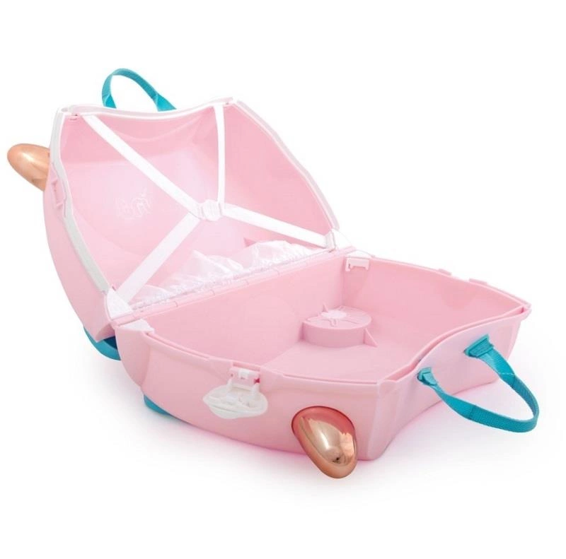 Walizeczka Trunki jest lekka, bezpieczna i wytrzymała. Dodatkowo jest bardzo pakowna (18 litrów), co umożliwia Twojemu dziecku zabranie ze sobą zabawek, gier, książeczek i dodatkowych ubranek. Posiada pasek służący do noszenia na ramieniu lub do ciągnięcia. Rogi walizeczki służą do trzymania się.