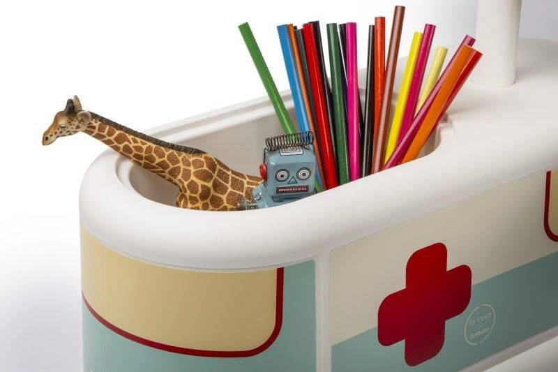 Wspaniały pojazd, który rozbudza wyobraźnię maluchów, wykonany w nowym, unikatowym stylu. Jeździk Karetka La Cosa Capsule Italtrike jest stabilny i zaskakująco zwrotny. Zawdzięcza to wytrzymałej konstrukcji oraz kołom pozwalającym bezszelestnie sunąć po pokoju, przednia para obraca się o 360 stopni umożliwiając precyzyjne manewrowanie zarówno w pomieszczeniach jak i podczas zabawy na świeżym powietrzu.