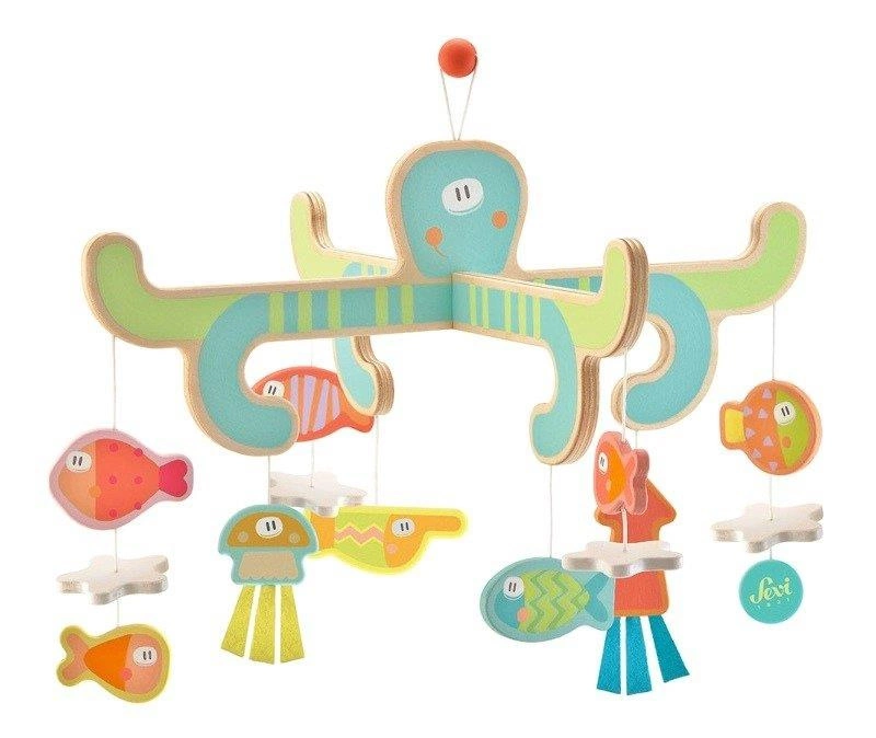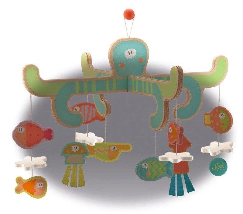 Wisząca ośmiornica Sevi to przepiękna karuzela do łóżeczka i jednocześnie ozdoba pokoju dziecka. Dodaje uroku miejscu w którym odpoczywa maluszek, ale też sprawia wiele radości niemowlakowi, który z ciekawością próbuje jej dosięgnąć. Morskie zwierzątka przyciągają uwagę malca oraz rozwijają jego wyobraźnię.