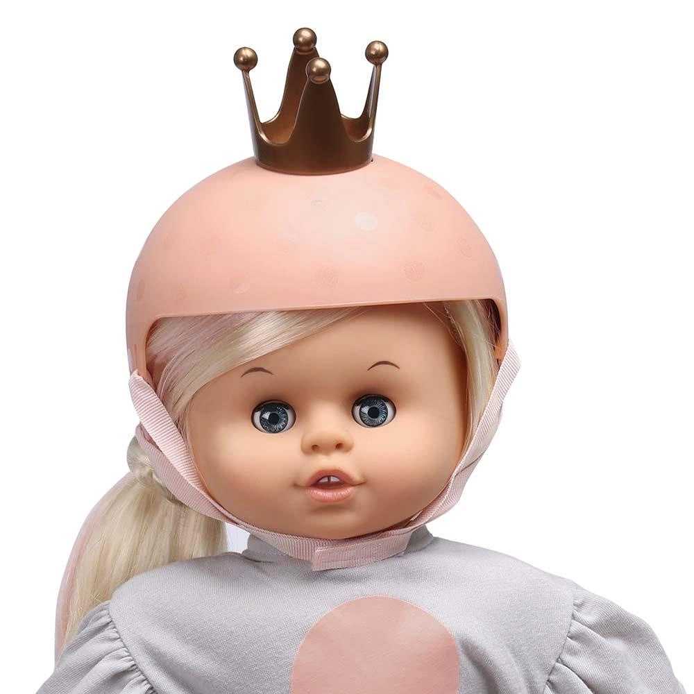 Lalka Skrållan uwielbia odkrywać świat na dwóch kółkach! W trosce o bezpieczeństwo, zawsze nosi swój uroczy różowy kask rowerowy - tak samo jak ty. Ten wyjątkowy kask dla lalki wyróżnia się lśniącymi kropkami i stylową złotą koroną na szczycie, dodając mu niepowtarzalnego uroku.