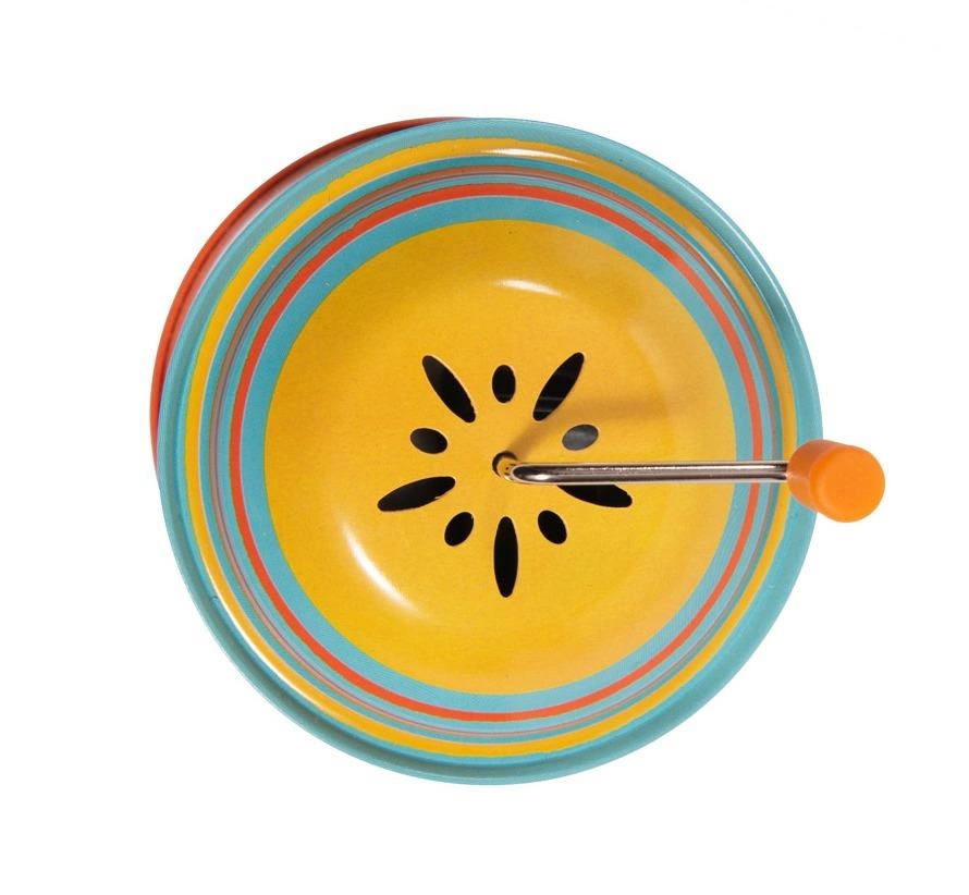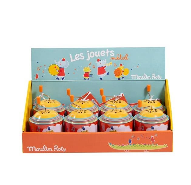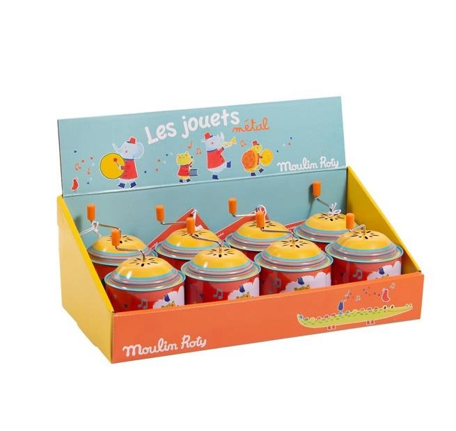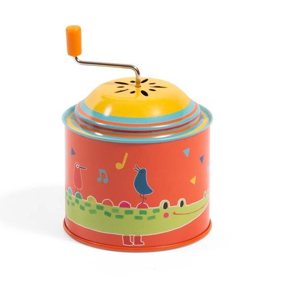 Zabawka z dawnych lat czyli metalowa katarynka w odsłonie od Moulin Roty. Wystarczy zakręcić korbką, aby usłyszeć przyjemną melodię. Zdobiona zabawnymi zwierzątkami takimi jak żabka lub krokodyl. Idealnie wprowadzenie do świata muzyki dla maluszków.
