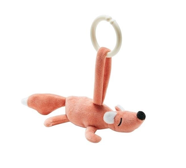 Przykuwająca uwagę zawieszka z kolekcji Edvin wykonana jest z przyjemnego w dotyku materiału, która umili spacer każdego Malucha. Lisek z grzechoczącym brzuszkiem zachęci dziecko do zabawy rozwijając jego wzrok i słuch. Podłużny kształt zwierzątka umożliwia łatwe jej chwytanie. Uniwersalne kółeczko znajdujący się na zawieszce ułatwi umieszczenie jej do większości wózków, łóżeczek i fotelików. Idealna do zabawy w domu, podczas podróży lub codziennych spacerów.