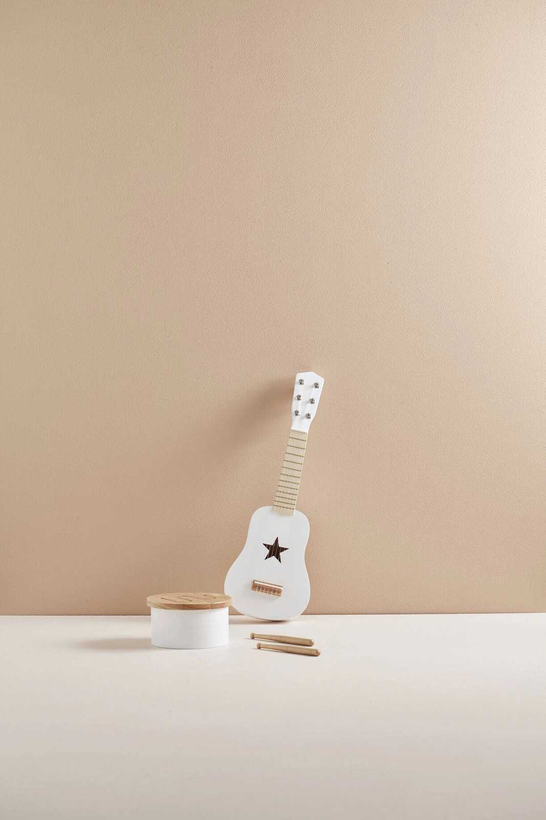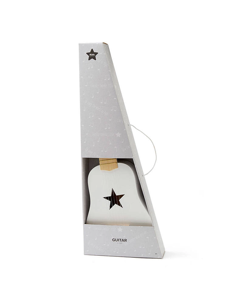 - Drewniana gitara zabawkowa z wycięciem w kształcie gwiazdy.