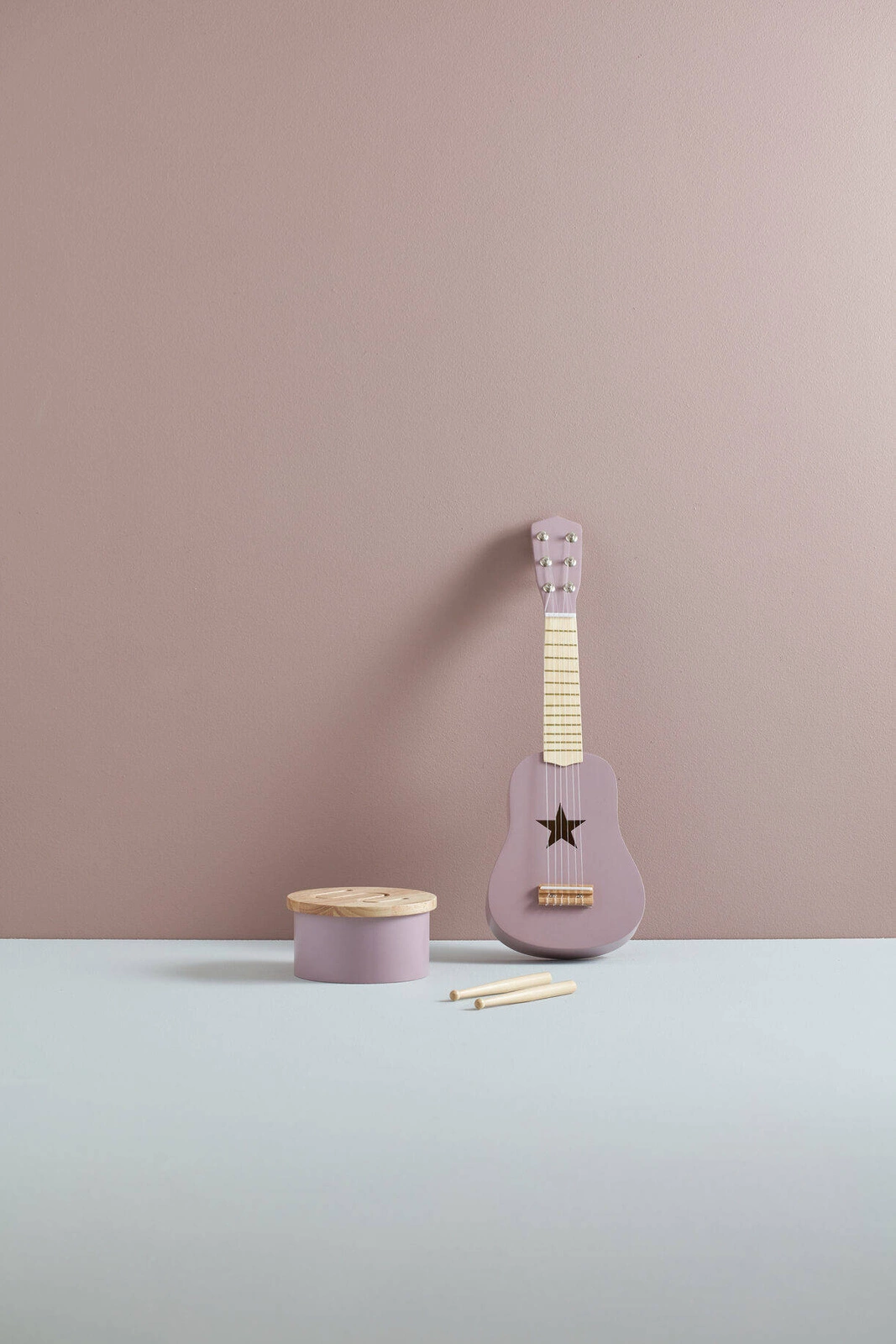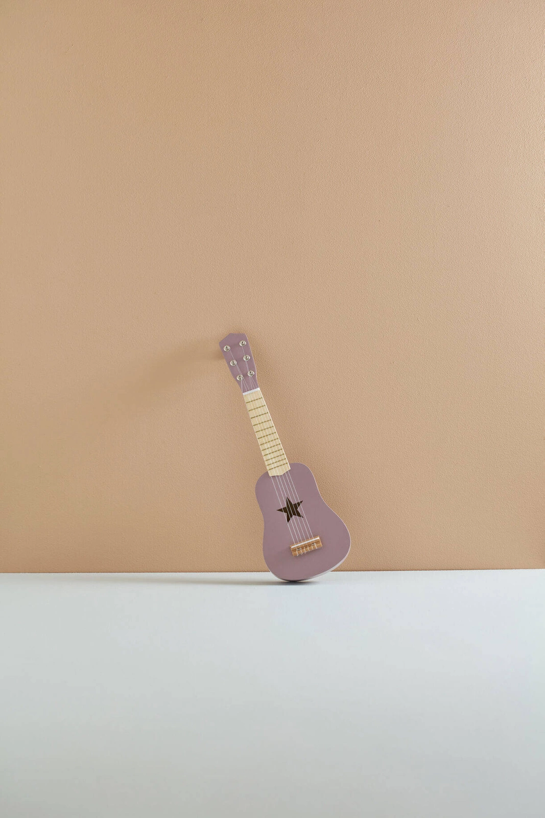 - Drewniana gitara zabawkowa z wycięciem w kształcie gwiazdy.