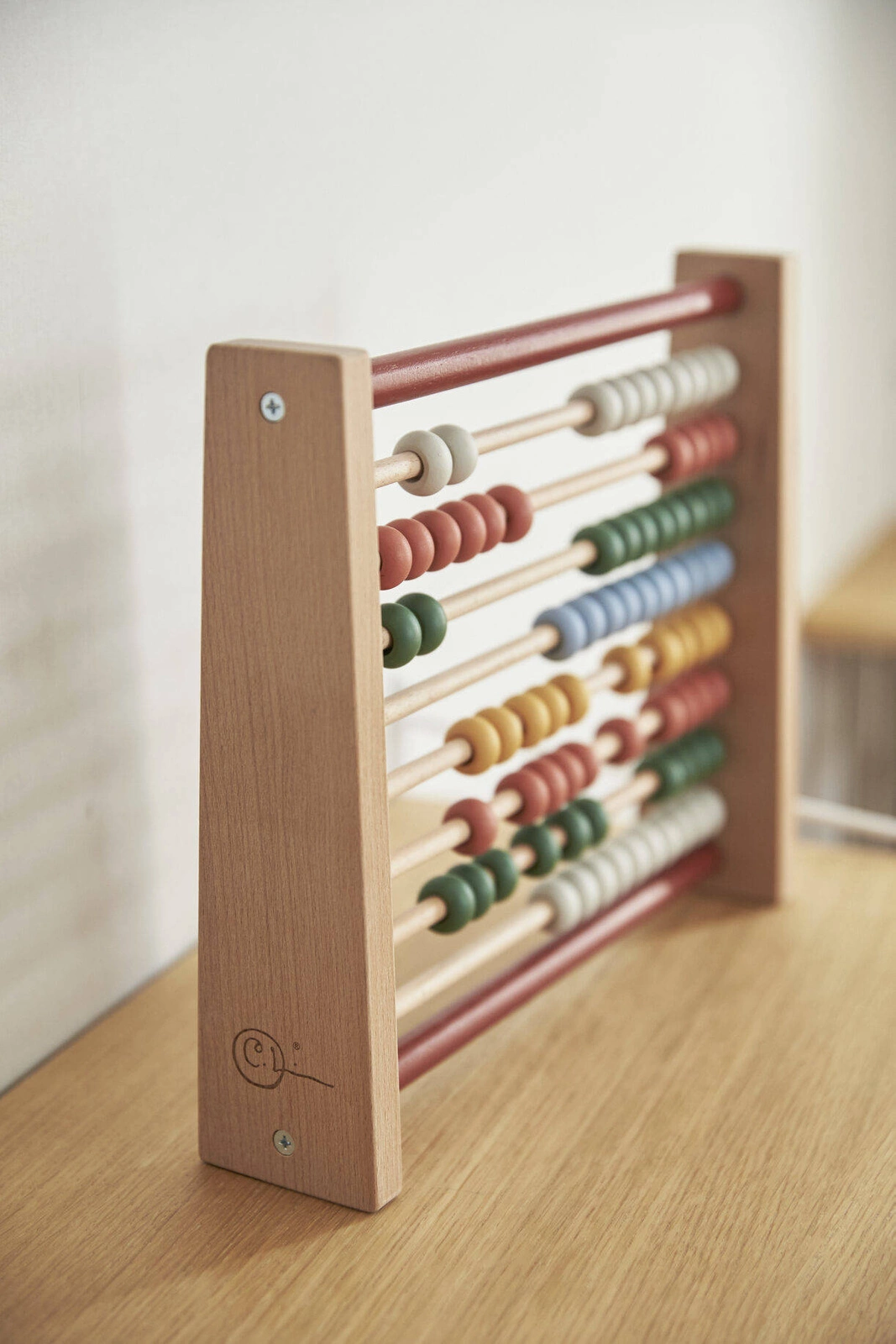 Drewniane zabawki z kolekcji Carla Larssona firmy Kid's Concept są dziś równie atrakcyjne, jak na początku XIX wieku. Drewniane liczydło ma osiem rzędów, w każdym jest dziesięć koralików. Kolorystyka tej popularnej zabawki nawiązuje do barw użytych w domu słynnego szwedzkiego projektanta Carla Larssona. Z boku, na ramce wypalono logo CL, a całość wykonana jest z drewna z certyfikatem FSC.