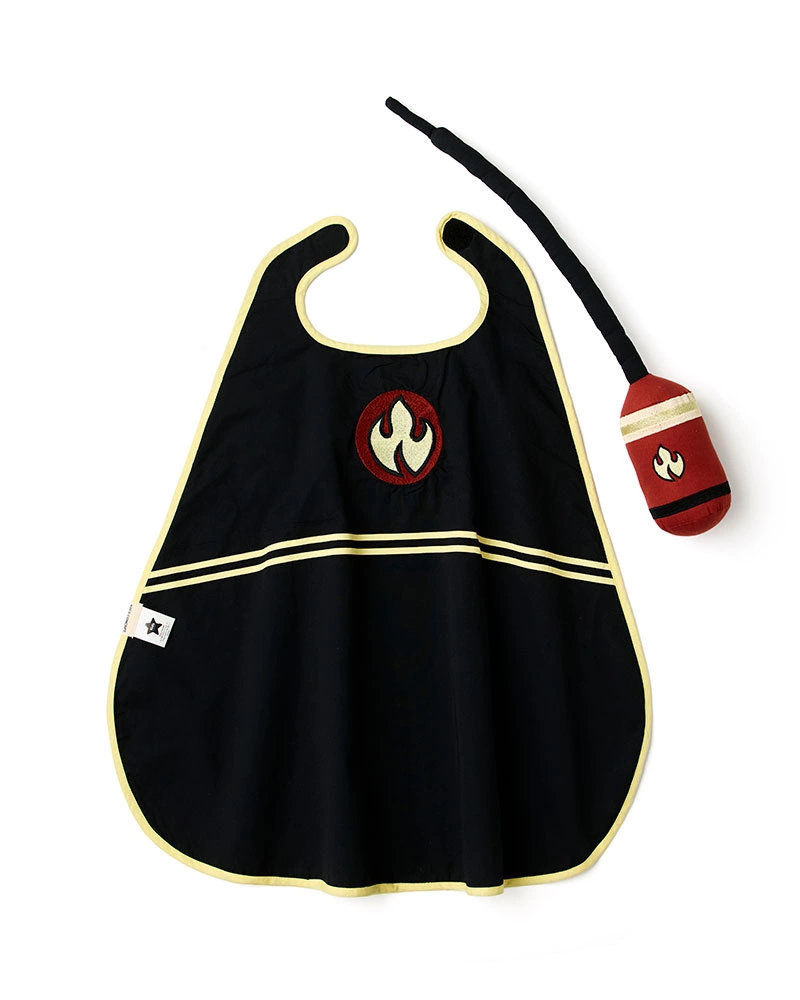 - Peleryna Strażaka z miękką zabawkową gaśnicą. Idealna do zabawy w gaszenie pożarów dla dzieci od 3 lat.