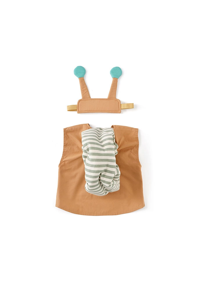 - Strój Ślimaka z miękką kamizelką z muszlą na plecach i opaską z czułkami. W sam raz do zabawy w przebieranki dla dzieci od 3 lat.