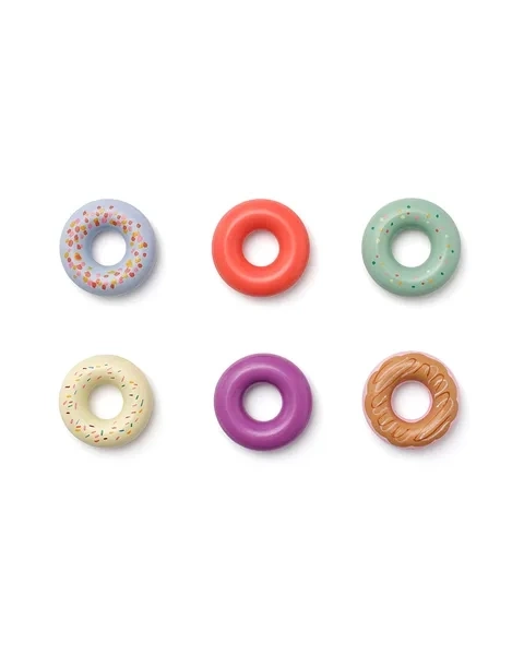 Zestaw sześciu kolorowych pączków to przepis na udaną, pełną wyobraźni zabawę. Każdy z nich kusi inną polewą – truskawkową z posypką, cytrynową, miętową, czekoladową, a nawet borówkową czy porzeczkową. Drewniane pączki wyglądają apetycznie i zachęcają do odgrywania scenek z cukierni lub domowych przyjęć.