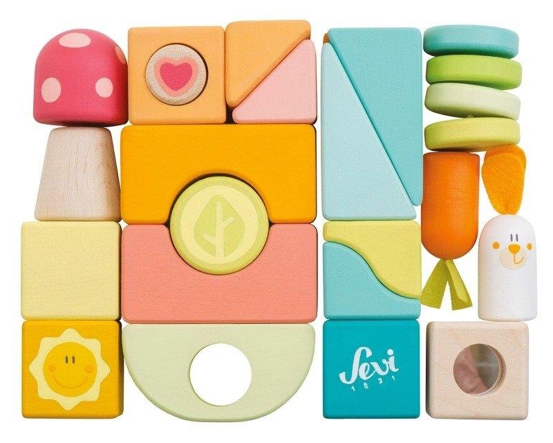 Drewniane klocki Sevi to idealna zabawka dla dzieci pragnących tworzyć, budować i rozwijać swoją wyobraźnię. Dzięki tym pięknym i oryginalnym klocuszkom, każdy malec poczuje się jak budowniczy i będzie mógł popuścić wodze swojej fantazji. Klocki do układania składają się z 25 elementów, które potrafią stworzyć ciekawe konstrukcje. To wspaniała i doskonaląca manualnie zabawa dla naszych pociech. Każdy maluch powinien posiadać klocki Sevi w swojej kolekcji.