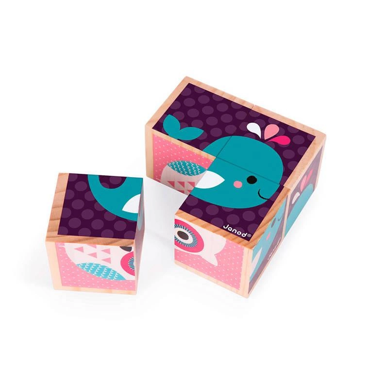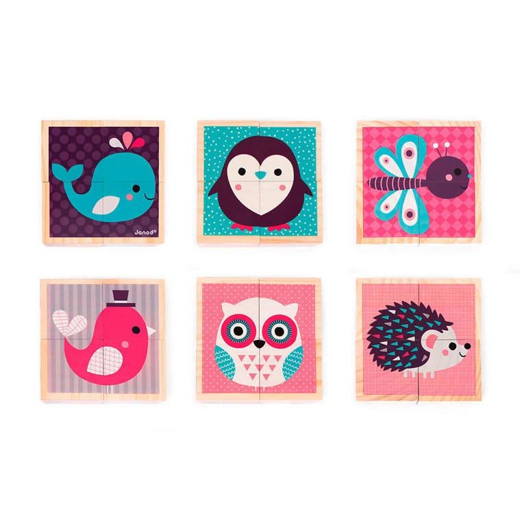 Klocki drewniane Puzzle 6w1 Zwierzątka, Janod