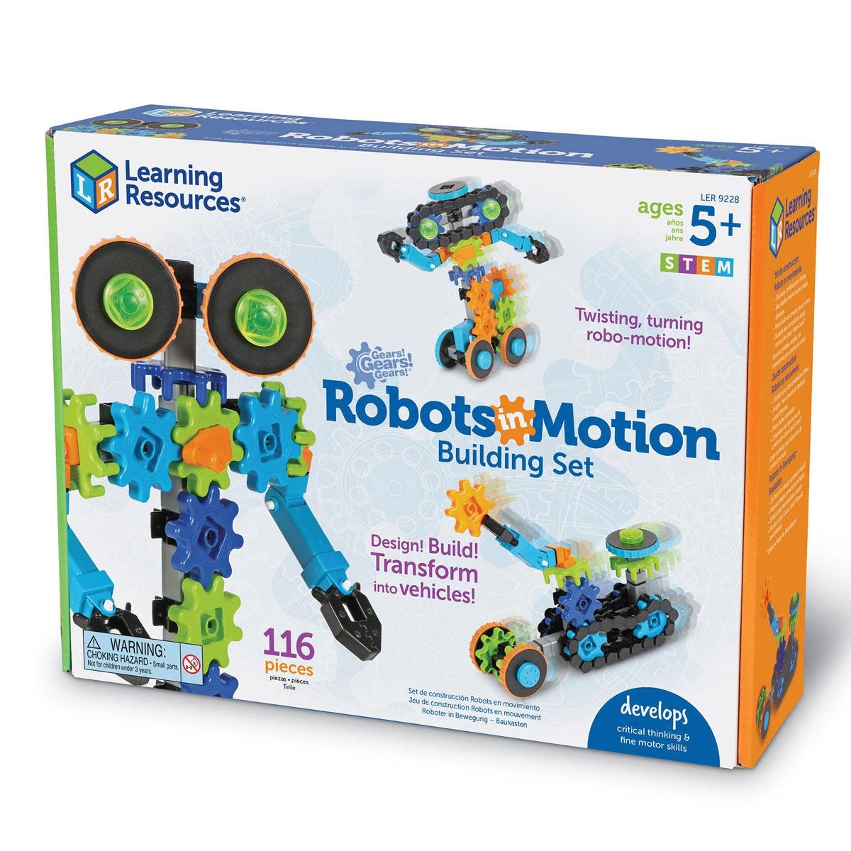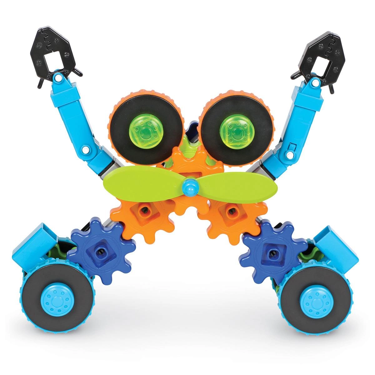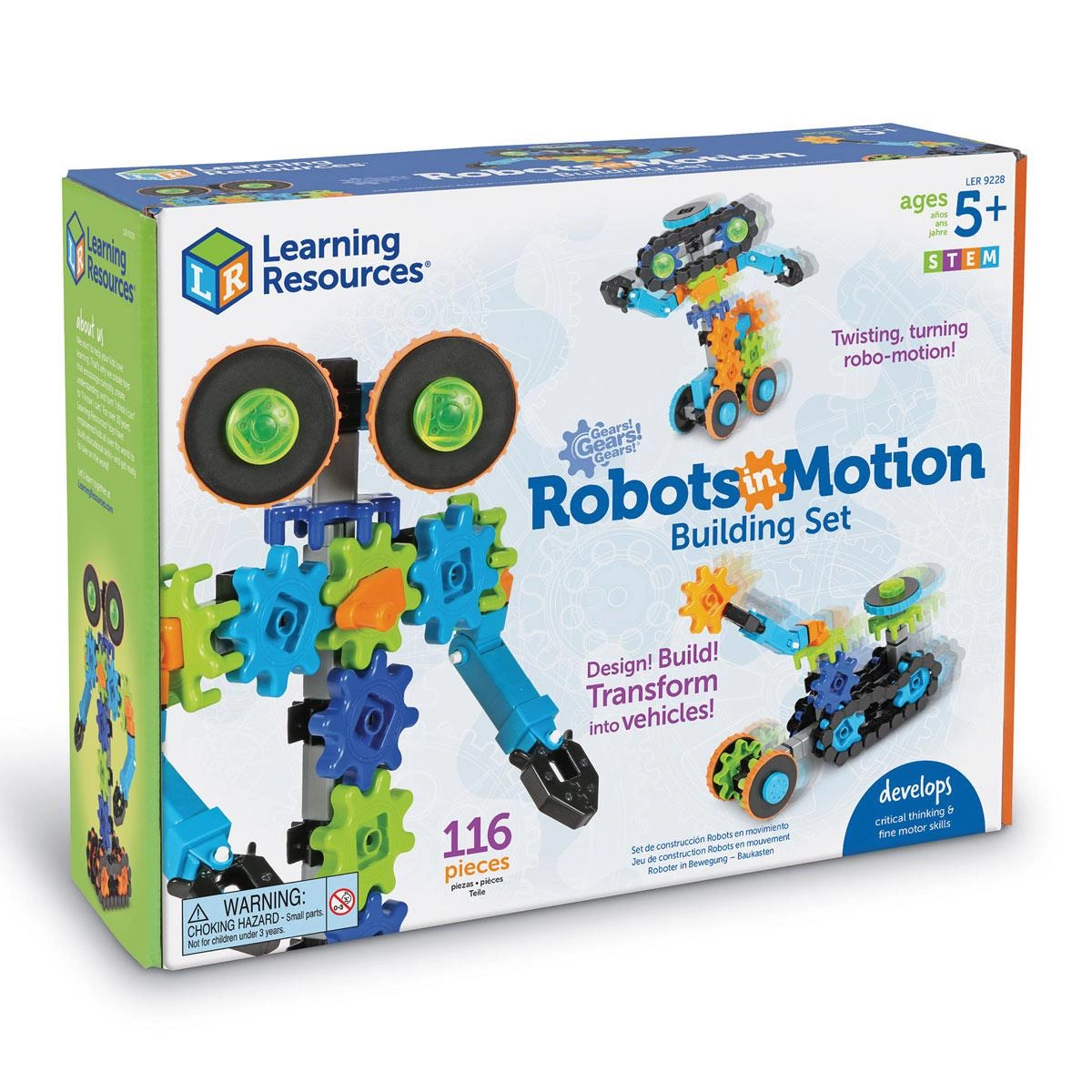 Zestaw konstrukcyjny złożony z 116 elementów, w którym zbudowane roboty mogą się kręcić, poruszać i obracać. Kolorowe, plastikowe, wytrzymałe koła zębate służą do budowy różnych wariantów robotów - z ruchomymi gąsienicami, ramionami, obracającymi się oczami. Zastosowano tu całkowicie nowe specjalne komponenty do projektowania i budowy robotów, samochodów i maszyn, które się poruszają i przekształcają. Dzięki tym klockom dzieci nauczą się logicznego myślenia oraz zauważą, jak działają koła zębate. Pomocna może być dołączona do zestawu instrukcja obrazkowa, ale często wyobraźnia dziecięca nie zna granic. Zestawy klocków GEARS! GEARS! GEARS!, poprzez zabawę, uczą dzieci podstaw STEM (Nauka, Technologia, Inżynieria, Matematyka).