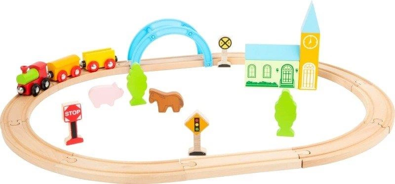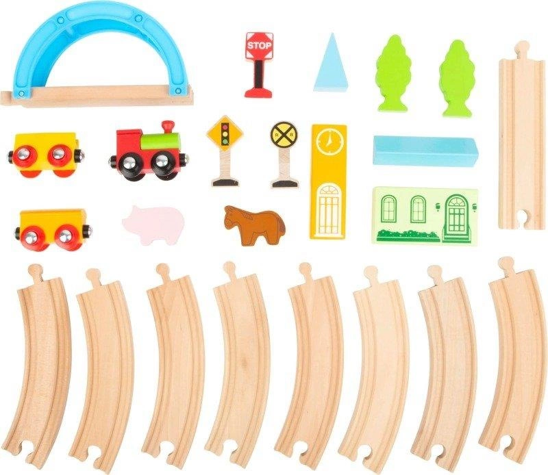 Kolejka drewniana z mostem Wieś i okolica 11490-Small Foot, kolejki dla dzieci
