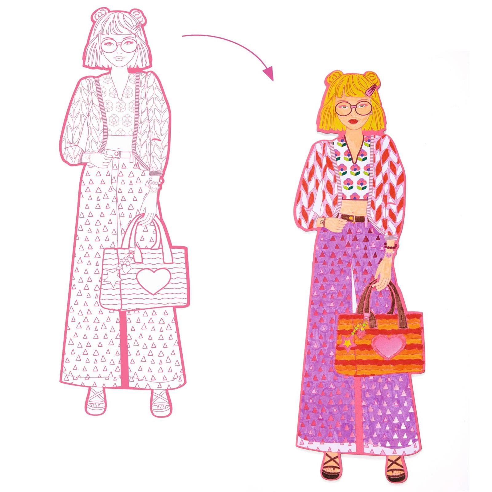 Zestaw postaci do kolorowania - Nina i jej przyjaciółki są gotowe na pokaz mody! Wzorzyste ubrania czekają na końcową wizję projektanta. W zestawie cztery duże kolorowanki (32 cm) z metalicznymi zdobieniami, które nadają dodatkowego szyku modelkom. Wykonane z papieru i kartonu posiadającego certyfikat FSC®.
