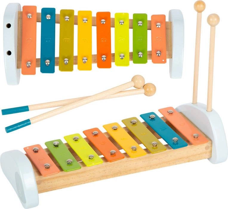 Kolorowe cymbałki dla dzieci „Groovy Beats” Small Foot to zabawka, którą pokocha każde dziecko. 8 kolorowych płytek, dwie drewniane pałeczki i nuty w kolorach odpowiadających dźwięczącym blaszkom spodoba się najbardziej wymagającym muzykom. Ksylofon to instrument, który ćwiczy pamięć słuchową oraz koordynację wzrokowo-ruchową, zapewniając przy tym niesamowicie dużo zabawy i frajdy. Instrument wykonany z drewna wysokiej jakości może stać się znakomitym uzupełnieniem pozostałych muzycznych zabawek pochodzących z kolekcji „Groovy Beats” Small Foot.