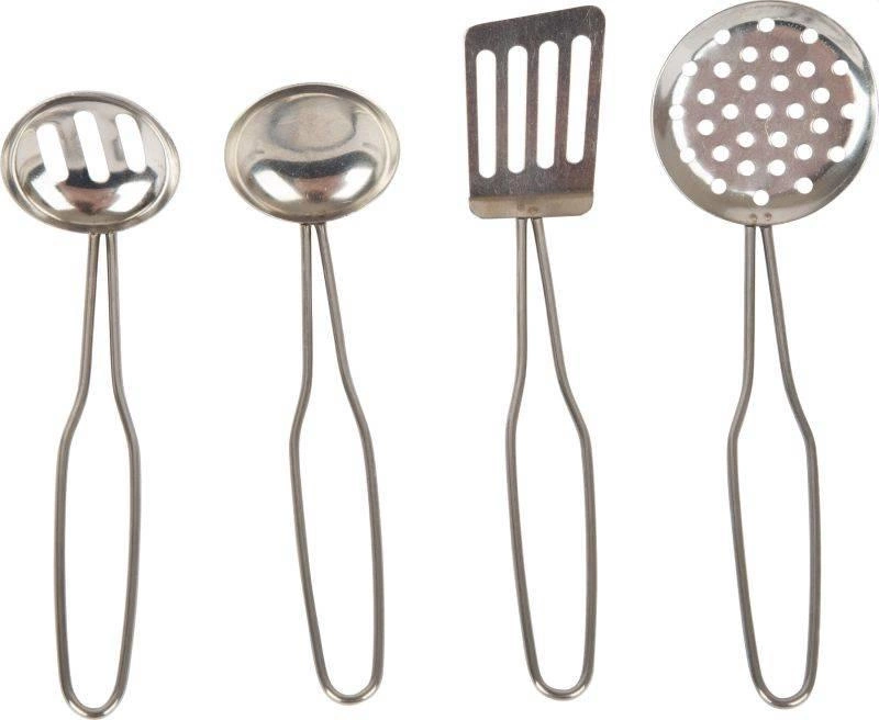 Kolorowe garnki i akcesoria do zabawy. Modna kolorystyka i wiele elementów zestawu zachęcają najmłodszych do kreatywnej zabawy. Komplet tworzą patelnia, dwa garnki ze zdejmowanymi pokrywkami, cedzak, dwie łyżki i dwie łopatki. Pokrywki garnków są kompatybilne z patelnią. Zestaw pozwala idealnie wcielić się w rolę kucharza.