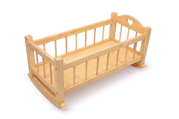 Ta lakierowana kołyska z naturalnego drewna zapewnia lalkom dobry sen po całodniowej zabawie! Ładny kształt oraz serduszko wycięte w drewnie, nadają temu artykułowi elegancji.