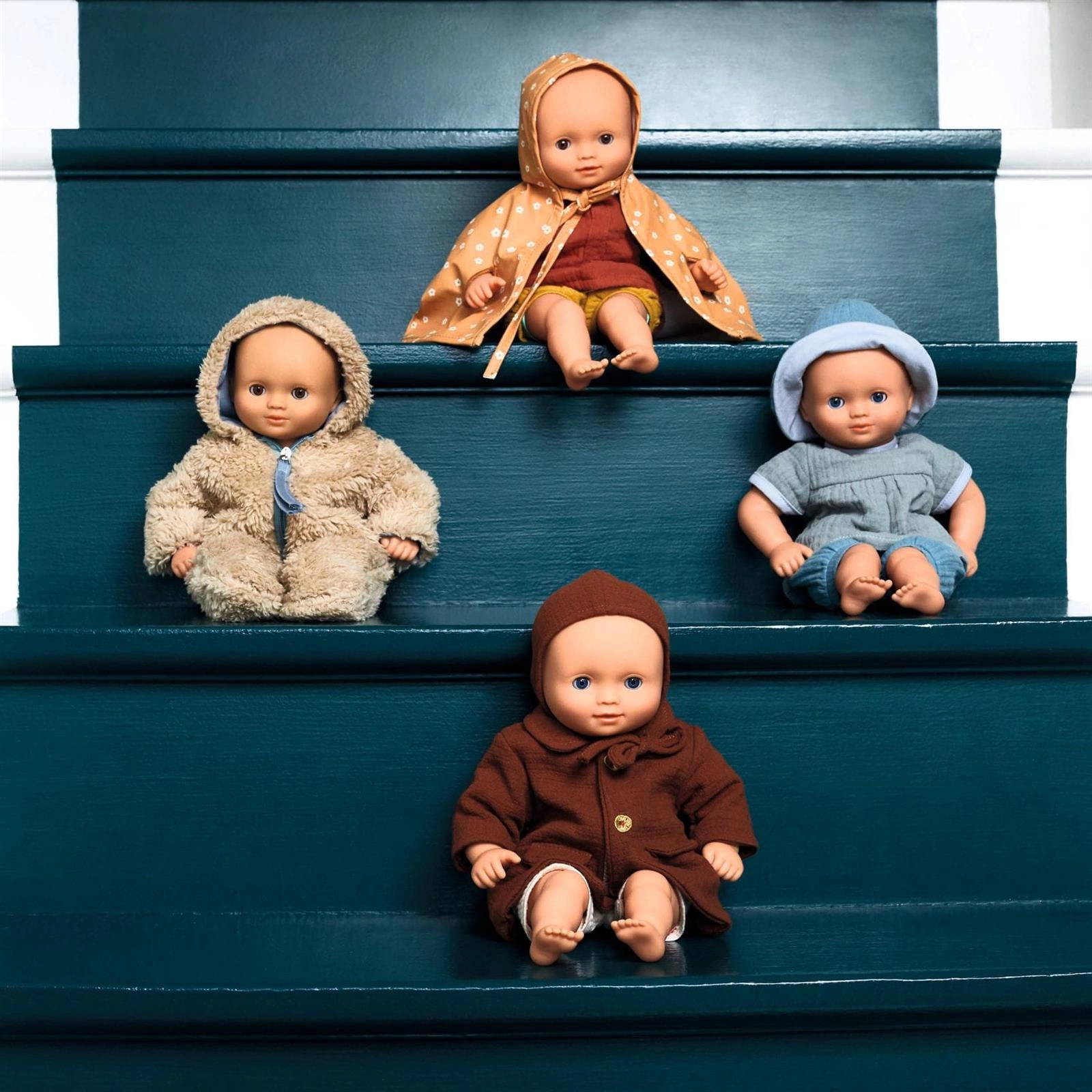 Bardzo lekki strój na lato z muślinu, składający się ze spodenek, koszulki z krótkim rękawem i małego kapelusza, który chroni lalkę przed słońcem. Ubranka lalki są zapinane na rzep, aby ułatwić ich wkładanie.