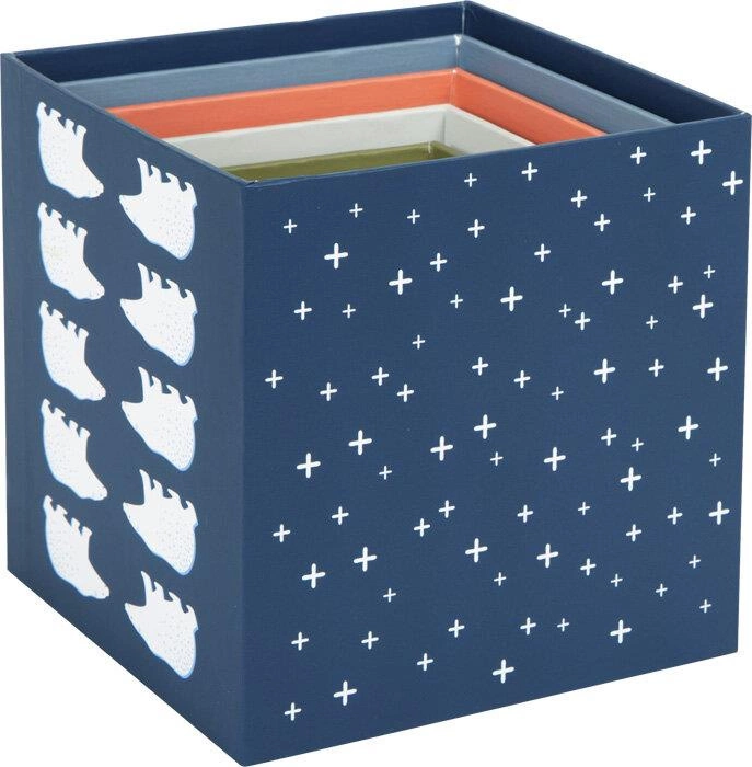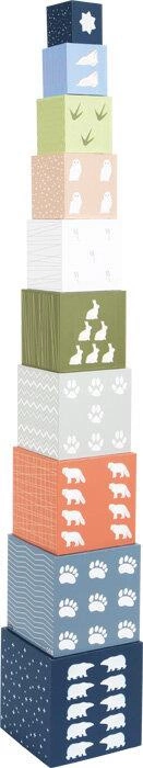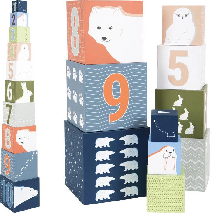 Kostki do układania "Arktyka" to prawdziwa gratka dla małych fanów zwierząt i zimy. Z tym zachwycającym zestawem pudełek do układania wieży, do malucha przybędą z wizytą: niedźwiedź polarny, królik śnieżny i przyjaciele! Dzięki tym dziesięciu kostkom do układania wykonanym z wytrzymałego kartonu z certyfikatem FSC® z motywem arktycznego krajobrazu, mali konstruktorzy mogą wykazać się umiejętnościami układania i odkrywać zwierzęta bieguna północnego w zabawny sposób. Każde pudełko ma odpowiedni numer kolejności układania i odpowiadającą mu liczbę nadrukowanych motywów. Obejmują one urocze wizerunki popularnych arktycznych zwierząt i ślady, które zostawiają na śniegu. Projekt kostek jest uzupełniony abstrakcyjnymi wzorami pochodzącymi ze środowiska arktycznego. Na górze każdej kostki znajduje się "Gwiazda Północna" z odpowiednią liczbą zygzaków.
