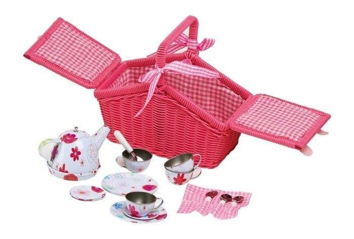 Piknikowy koszyk Kwiatuszek small foot design to świetna propozycja dla dziewczynek, które lubią spotykać się na tea party. Koszyk wykonany jest z plastikowych, plecionych rurek z zamykaniem. W jego wnętrzu znajduje się zestaw do herbaty dla dzieci. 18 elementów zestawu uprzyjemni użytkowanie dzieciom oraz zaproszonym lalkom i misiom. Każdy z nich ma swoje miejsce w koszyku, więc całość jest łatwa w transporcie.