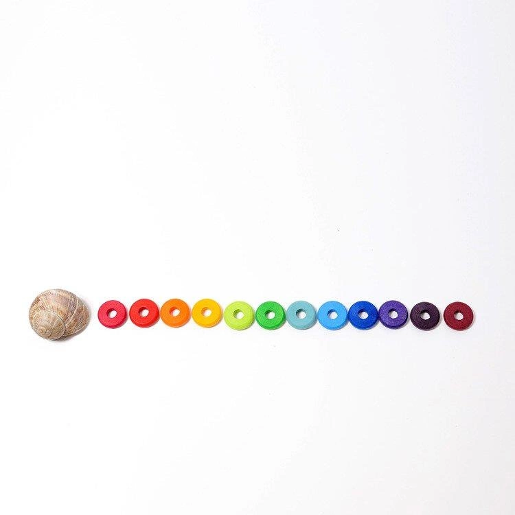 Jak wszystkie zabawki Grimm's, tak i krążki zachwycają jakością wykonania i pięknymi kolorami. Gdy forma jest tak prosta jak w tym przypadku, to właśnie materiał i detal mają największe znaczenie. Drewno wyszlifowano tu tak by dotykanie go sprawiało przyjemność. Dyski są gładkie, aksamitne i ciepłe, w ten typowy dla drewna sposób. Miło jest toczyć je pomiędzy palcami, gładzić i turlać pod dłonią. Dzieci to uwielbiają.